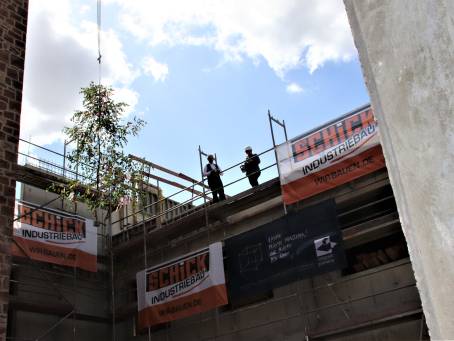 Es ist viel passiert auf der KA.RE. Baustelle in der Biegenstraße 18. Seit dem Spatenstich im April 2022 und der Grundsteinlegung im Juli 2022 sind die Bauarbeiten für das neue katholische Regionalhaus „KA.RE.“ neben der Kirche St. Peter und Paul in vollem Gange. Umfangreiche Abbruch-, Erd- und Gründungsarbeiten sowie das Herstellen der Bodenplatte waren im Vorfeld notwendig, doch jetzt nimmt das Gebäude auch äußerlich Form an. Täglich wachsen die Wände mehr in die Höhe. Die Rohbauarbeiten gehen damit im zweiten Quartal zu Ende und ein weiterer Meilenstein ist erreicht: am 17. Mai haben wir das Richtfest mit den Mitarbeitenden der Baustelle, den Nachbarn und allen engagierten Beteiligten, die von Beginn an zum Gelingen des Projektes KA.RE. beigetragen haben, gefeiert.
