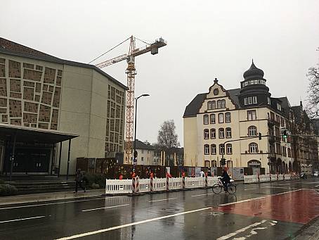 Die beiden Aufnahmen vom selben Standpunkt aus zeigen die Bauzustände unseres Katholischen Regionalhaus Marburg (KA.RE.) an der Biegenstraße im Herbst 2022 und 2023.