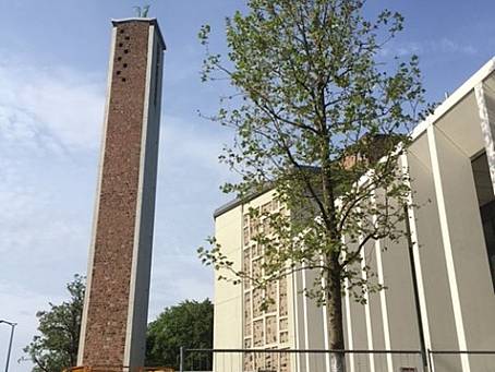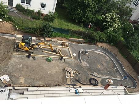 In den Außenbereichen geht es voran: nun steht eine stattliche Platane auf unserem neuen Kirchenvorplatz (Bild 1). Der Zaun zum Nachbargrundstück ist wiederhergestellt und dahinter eine neue Hecke gepflanzt. Die Außenterrasse des Kindergartens mit den Treppen ist fertiggestellt, der Spielplatz wird nun mit Beton- und Holzeinfassungen gestaltet (Bild 2).