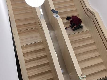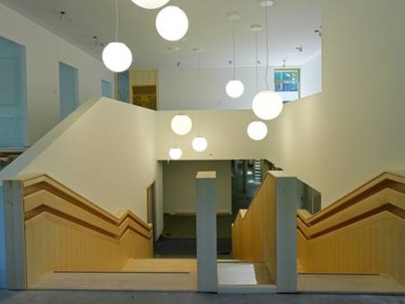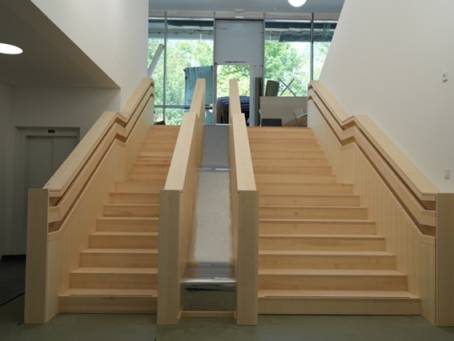 Anstelle eines Textes diesmal Impressionen von der neuen, hellen und wunderschönen Innentreppe des Kindergartens mit der dazwischenliegenden Edelstahlrutsche.