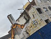 Zum Jahresbeginn stand eine letzte große Umräumaktion an: Die Sakristei wurde komplett leergeräumt und ins Kellergeschoss unter die Kirche umgezogen. Eine mobile Heizanlage und ein Toilettenwagen wurden angeschlossen. Ab dem 10.01. wurde es dann ernst: Begonnen mit dem Roncallihaus/KHG werden die Gebäude von oben nach unten abgerissen. Außerdem steht seit Mitte Januar nun an der Biegenstraße ein vierzig Meter langer Bauzaun aus Holz, der in den kommenden Wochen von verschiedenen Gruppen gestaltet wird.